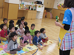 絵本、紙芝居、視聴覚教材などを見たり聞いたりして、言葉を豊かにし、