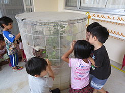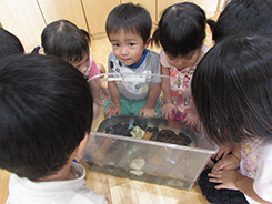 動物との触れ合いや飼育の手伝いを通して生き物への興味や関心を持たせ愛護する気持ちを育てます。