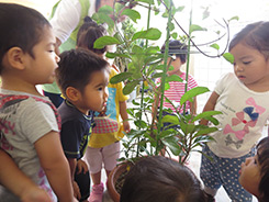 身近な植物(花・木)を見たり触れたりして面白さ美しさ等に気づかせ豊かな感性を育てます。